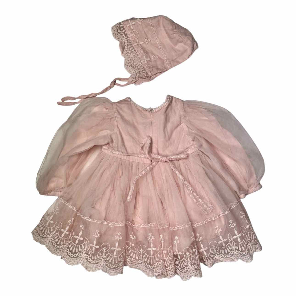 Lace Decal Tulle Dress w/ Bonnet